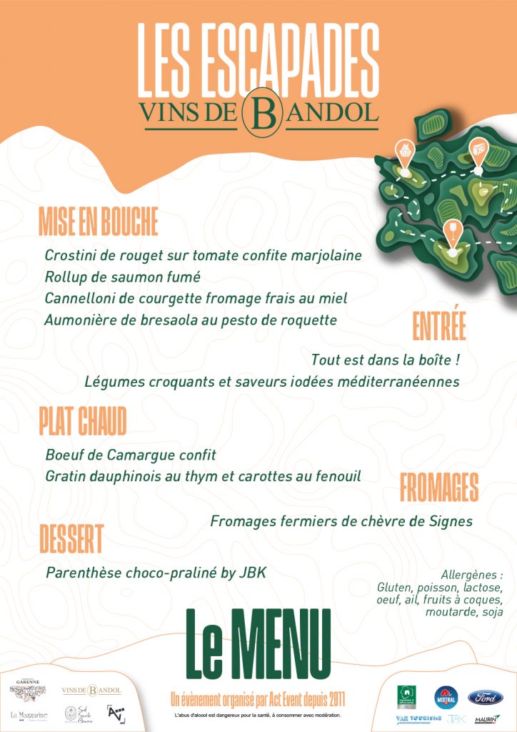 Menu des Escapades 2026
